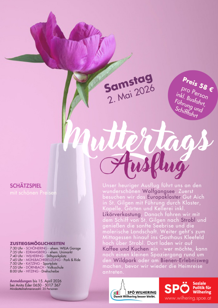 Samstag, 2. Mai 2026. Preis pro Person, inkl. Busfahrt, Führung und Schifffahrt: 58 Euro.